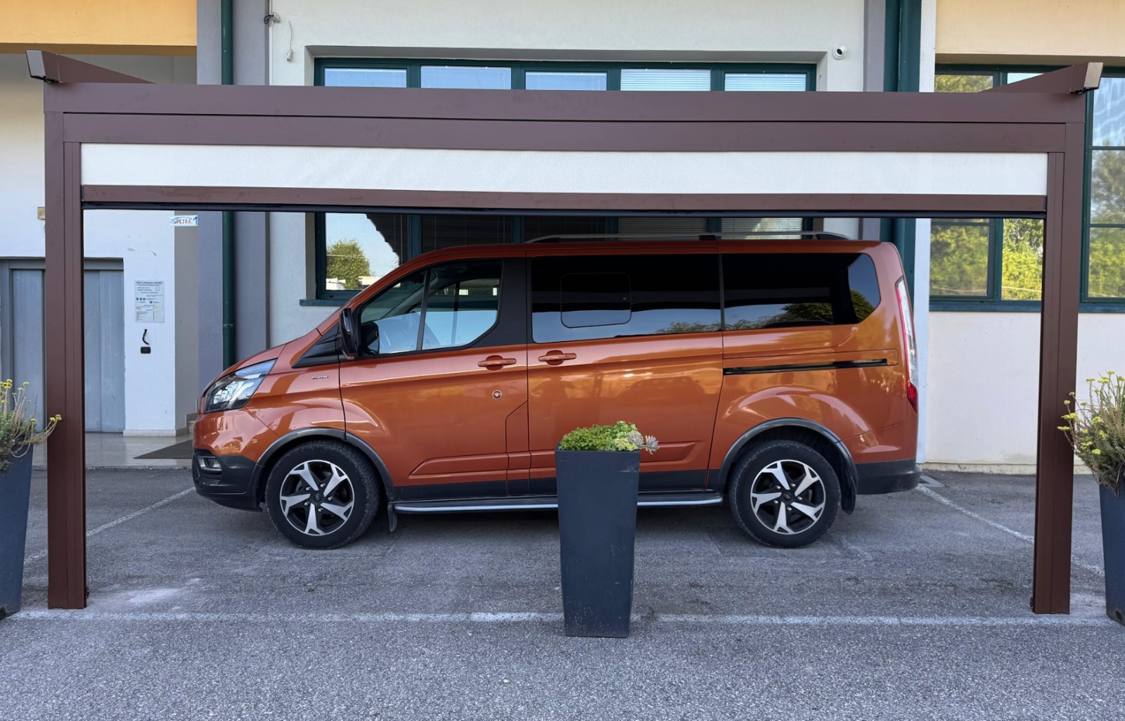 Struttura portante in acciaio zincato a caldo secondo norme UNI EN ISO 1461 con possibilità di verniciatura della struttura con RAL a scelta dalla nostra cartella colori.