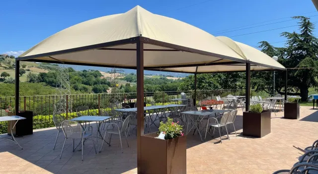 - Predisposto per l’inserimento di laterali, tendaggi o anche vetri.